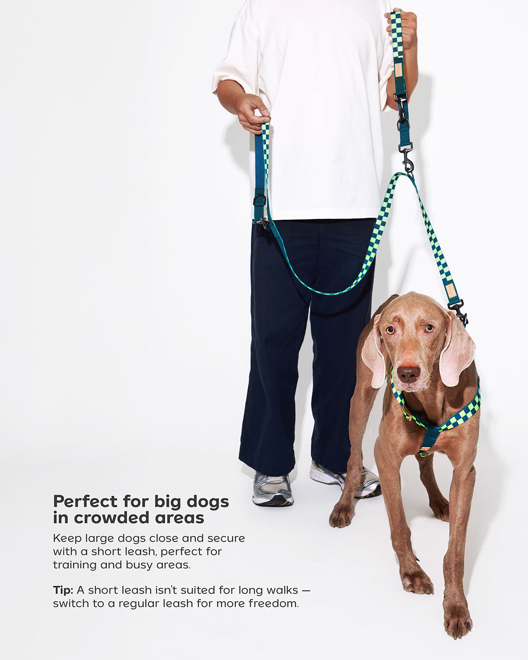 ยิ่งอยู่ใกล้ยิ่งรู้สึกอุ่นใจ เมื่อใช้สายจูงสุนัขแบบสั้น จะช่วยให้คุณควบคุมสุนัขได้เป็นอย่างดีในพื้นที่ที่มีคนหนาแน่น หรือต้องการให้สุนัขอยู่ใกล้ตัวเป็นพิเศษ  นอกจากนี้ยังสามารถปรับรูปแบบการใช้งานได้หลากหลายเมื่อใช้คู่กับสายจูงสุนัขปกติ ไม่ว่าจะเป็นการใช้งานแบบ Hands-free หรือใช้สำหรับจูงสุนัข 2 ตัวพร้อมกัน ก็สามารถทำได้