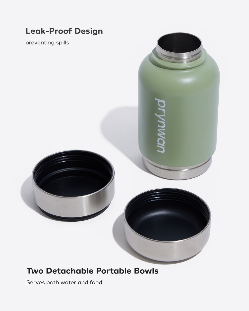 เป็นเจ้าของความสะดวกสบาย กับดีไซน์ขวดน้ำสเตนเลสที่พร้อมตอบไลฟ์สไตล์ทั้งเจ้าของและสุนัขตัวโปรดในขวดเดียว ผลิตจากสเตนเลสสตีลคุณภาพสูง ทนทานต่อการเกิดสนิม ปลอดสาร BPA มาพร้อมลูกเล่นที่สามารถปรับการใช้งานได้หลากหลาย ด้วยชามที่แบ่งที่ก้นขวด สามารถถอดออกมาใส่น้ำและอาหารได้ แถมยังพกพาสะดวกด้วยการออกแบบหูจับให้มีขนาดที่พอดีสำหรับการหิ้วหรือเกี่ยวกับอุปกรณ์อื่น ๆ